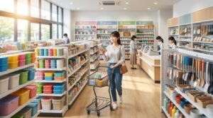 広々とした店内には、キッチン用品から文房具、美容グッズ、収納アイテム、そして季節の雑貨まで、ありとあらゆる商品が並んでいます。
